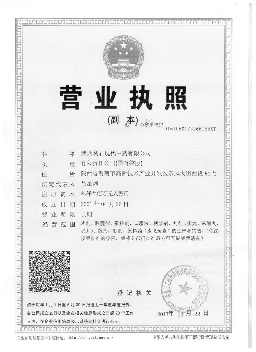 公司名稱:陜西利君現(xiàn)代中藥有限公司