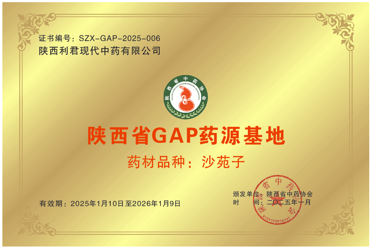 1.成果評價意見 技術(shù)體系完整:項目涵蓋種源篩選、種植、提取、制劑、健康產(chǎn)品開發(fā)全環(huán)節(jié),研發(fā)資料規(guī)范,數(shù)據(jù)真實可靠,產(chǎn)品檢測符合企業(yè)標(biāo)準(zhǔn)(Q/LJQSP系列)及國家藥品/化妝品備案要求; 質(zhì)量標(biāo)準(zhǔn)領(lǐng)先:無糖型沙苑子顆粒首次將沙苑子苷A納入量化指標(biāo)(≥1.5mg/袋),高于原衛(wèi)生部藥品標(biāo)準(zhǔn)(《中藥成方制劑第十二冊》),獲陜西省重點新產(chǎn)品證書(編號XCP2022069,2022年); 產(chǎn)業(yè)價值顯著:通過GAP基地建設(shè)及“三變”模式,帶動渭南大荔沙苑地區(qū)種植產(chǎn)業(yè)標(biāo)準(zhǔn)化,入選陜西省藥用植物科技示范基地(2023年),助力鄉(xiāng)村振興與中醫(yī)藥振興融合。 2.科技查新結(jié)論 受陜西利君現(xiàn)代中藥有限公司委托,陜西省科學(xué)技術(shù)情報研究院對“無糖型沙苑子顆粒”查新(2022年):篩選密切相關(guān)文獻18篇,結(jié)論為“相關(guān)文獻涉及甜菊素、麥芽糊精在無糖顆粒中的輔料應(yīng)用,但未明確述及用于無糖沙苑子顆?!保_認(rèn)該制劑工藝具有創(chuàng)新性。 3.行業(yè)專業(yè)檢測與認(rèn)證 藥品檢測:經(jīng)江西省藥品檢驗檢測研究院檢驗,無糖沙苑子顆粒中沙苑子苷A含量符合藥品注冊要求(≥1.5mg/袋); 種植認(rèn)證:2025年獲陜西省中藥協(xié)會“陜西省GAP藥源基地”證書(SZX-GAP-2025-006); 知識產(chǎn)權(quán)認(rèn)證:2024年獲“包裝盒(沙苑子顆粒)”外觀設(shè)計專利(專利號ZL202330718074.9,國家知識產(chǎn)權(quán)局)。